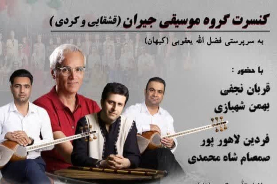 به گزارش خبرنگاران گروه فرهنگ، هنر و رسانه گزارش خبر، کنسرت گروه موسیقی جیران قشقایی به سرپرستی فضل الله یعقوبی (کیهان) با صدای هنرمند سینمای ایران "قربان نجفی" و خواننده ی خوب قشقایی "بهمن شهبازی" در تالار حافظ شیراز در روز یکم و دوم آبان در چهار سانس روی سِن خواهد رفت.